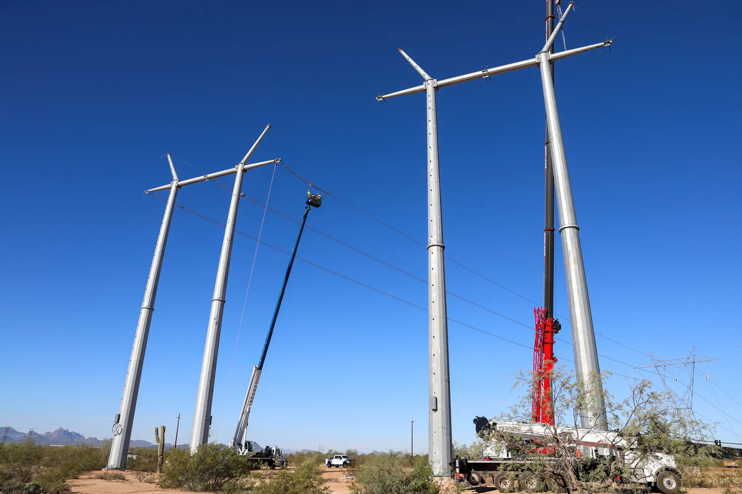 In 2025, we completed the rerouting of two 345kV lines and the expansion of a 230/500kV tie on the west end of Tortolita Substation in Tucson, AZ. Completed in three months, the project involved a small but highly technical scope on two large 500kV lines, including a variety of specialized activities.